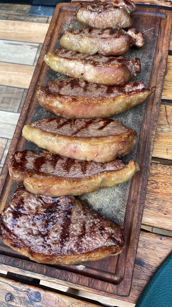 In the afternoon we went back to Orla’s Spots Bar to watch the Brazil-England game. Brazil won but we didn’t stay till the end to see everyone celebrate as we went to get me a quick tattoo of the Andes Mountains to represent my time in South America. For dinner we went to Fogo do Chao – a Brazilian institution! Couldn’t come to Rio and not go. For those of you who aren’t familiar with Fogo do Chao, there is an unlimited self service salad bar and then you have a coaster, red on one side, green on the other. When you want meat you turn it green, when you don’t you flip it to red. Waiters come out with a variety of meats and cuts on skewers and they cut a bit off for you – delicious!